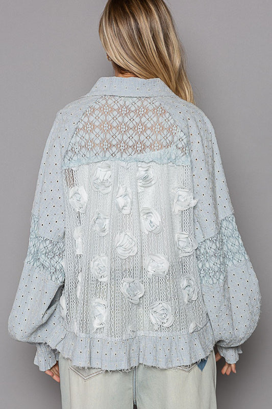 Eyelet & Pearl Detailed Lace Patchwork Top