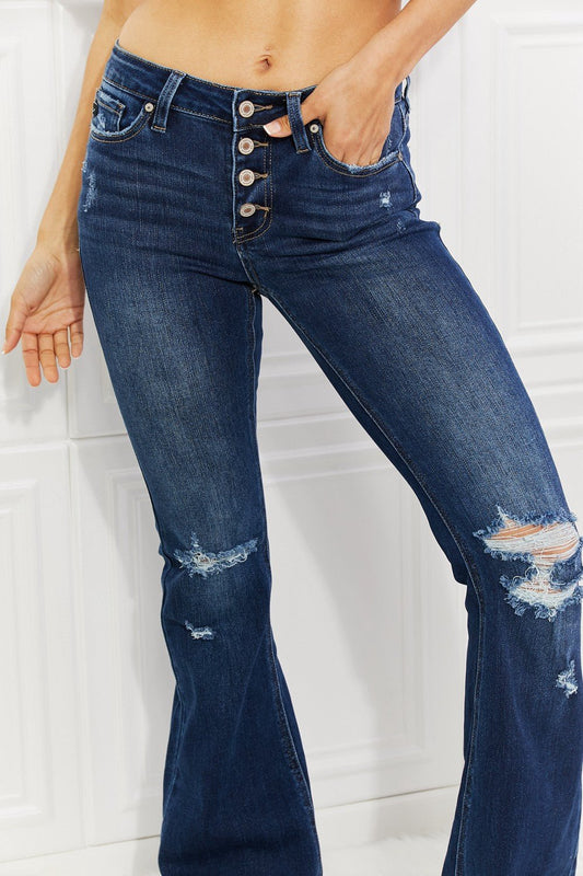 Button Fly Flare Jeans
