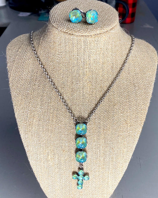 Silky Sage Cross Necklace & Earring Set