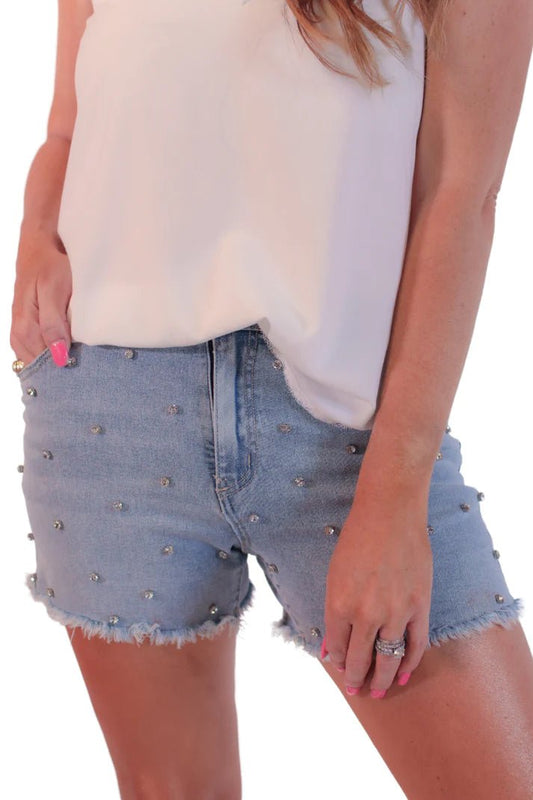 Rhinestone Studded Denim Shorts