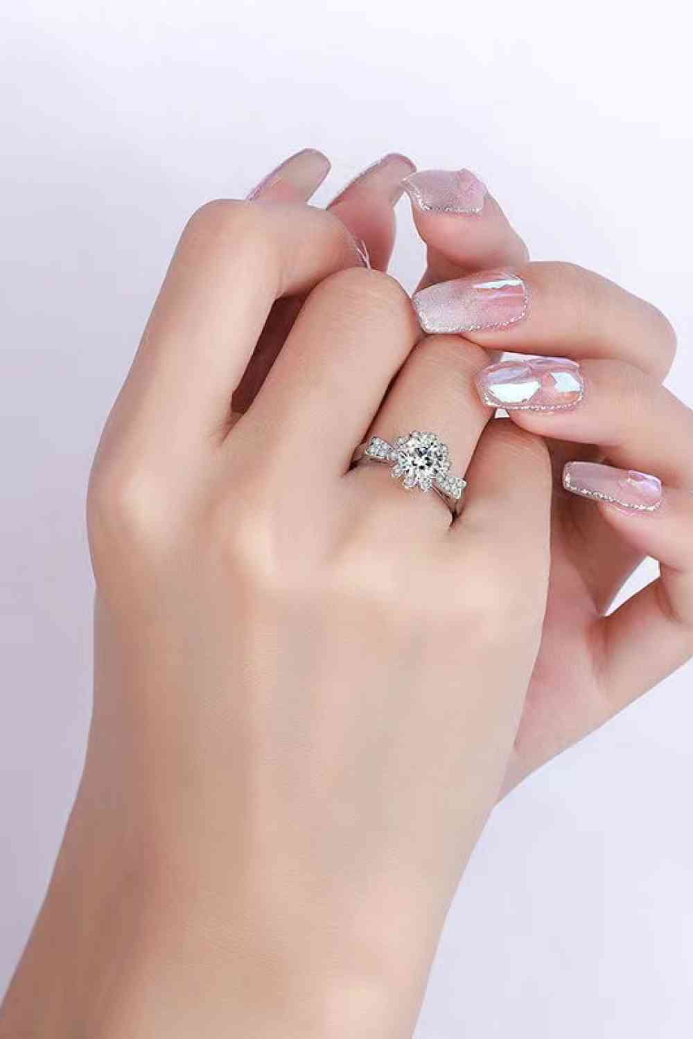 Round solitaire Moissanite set in sterling silver with zirconia accents, this truly unique piece is the perfect expression of your unique sense of style.
